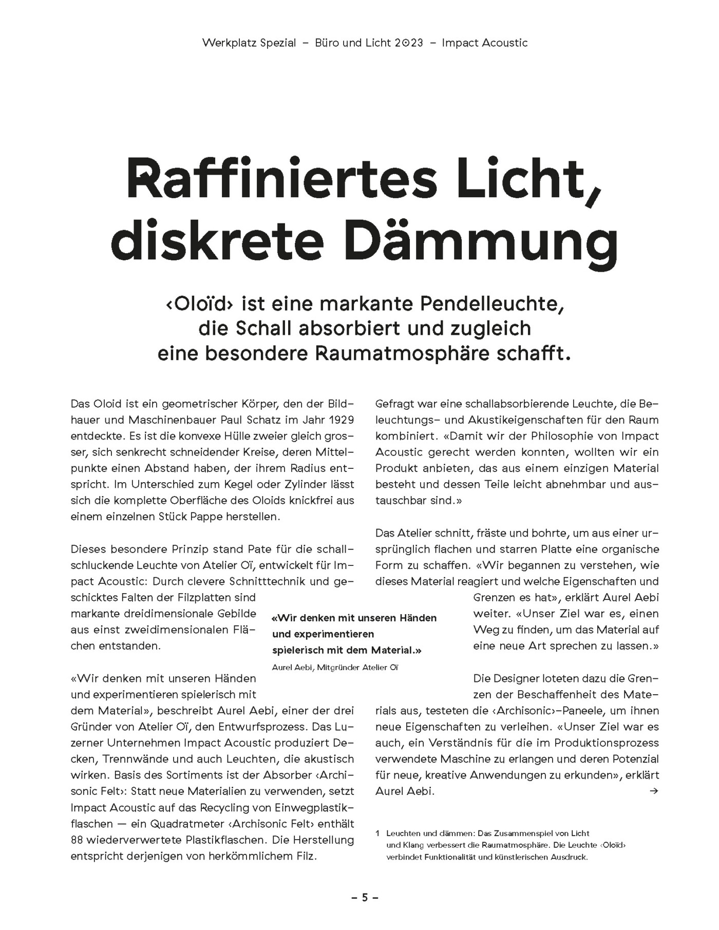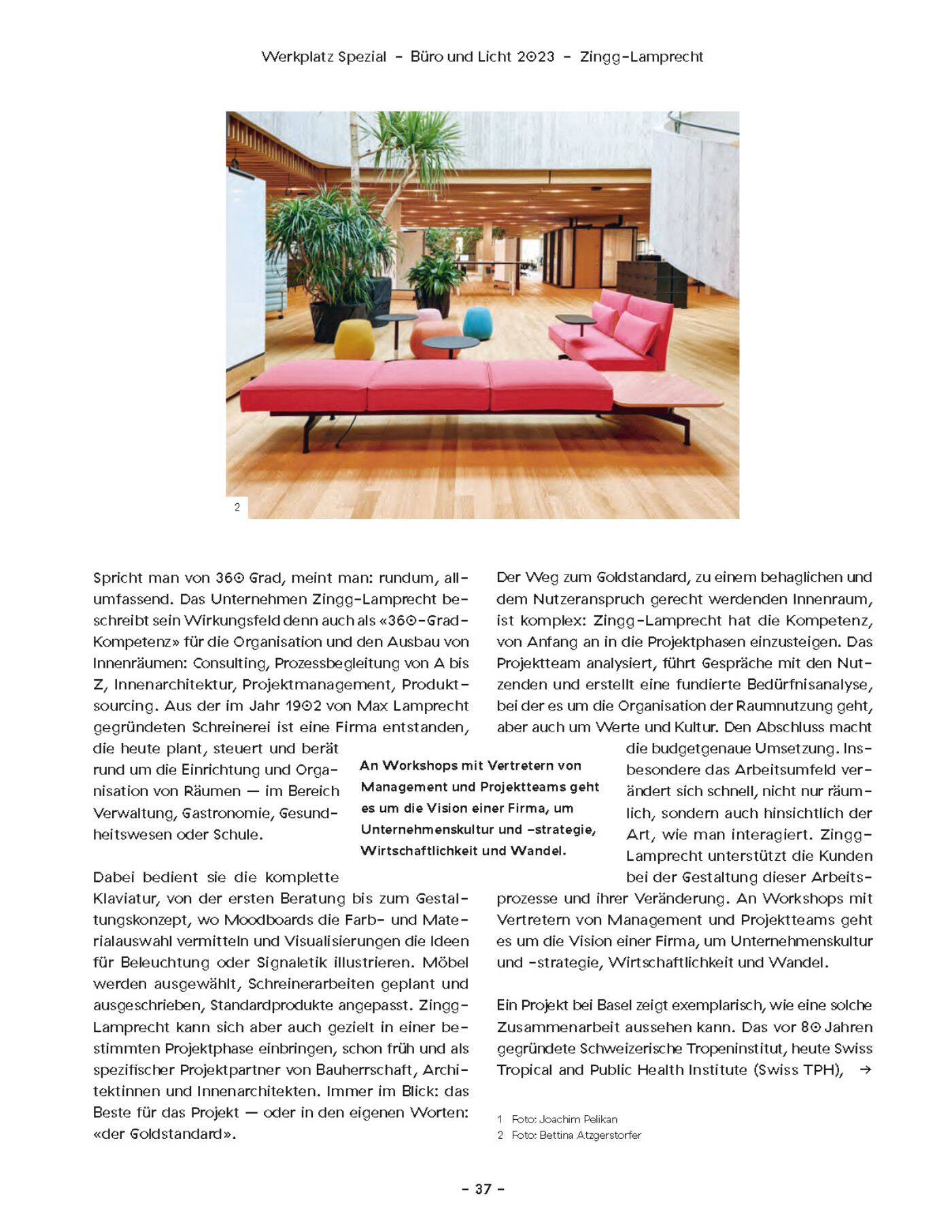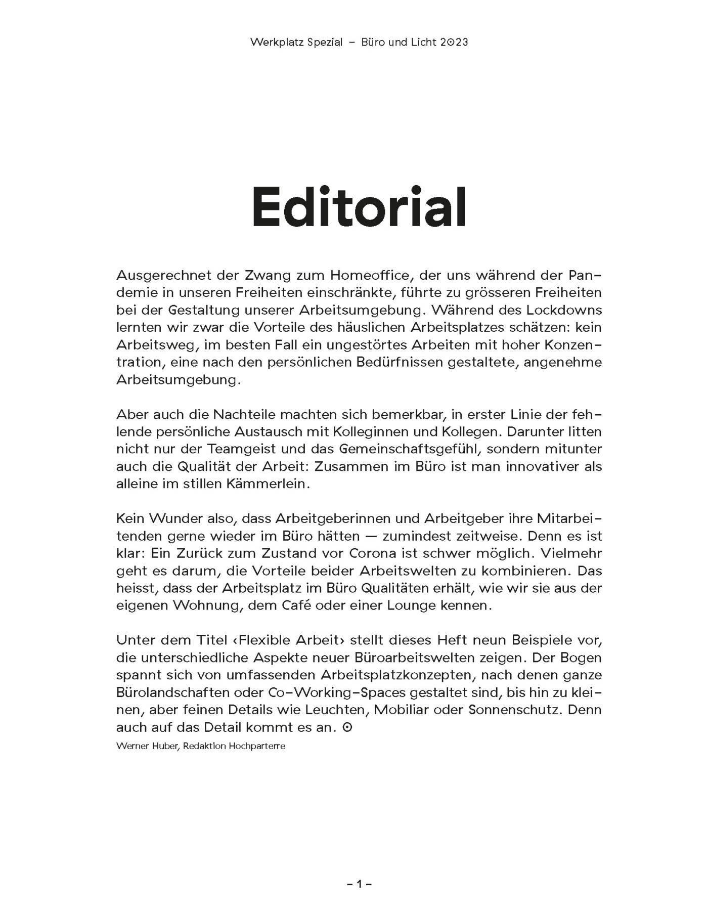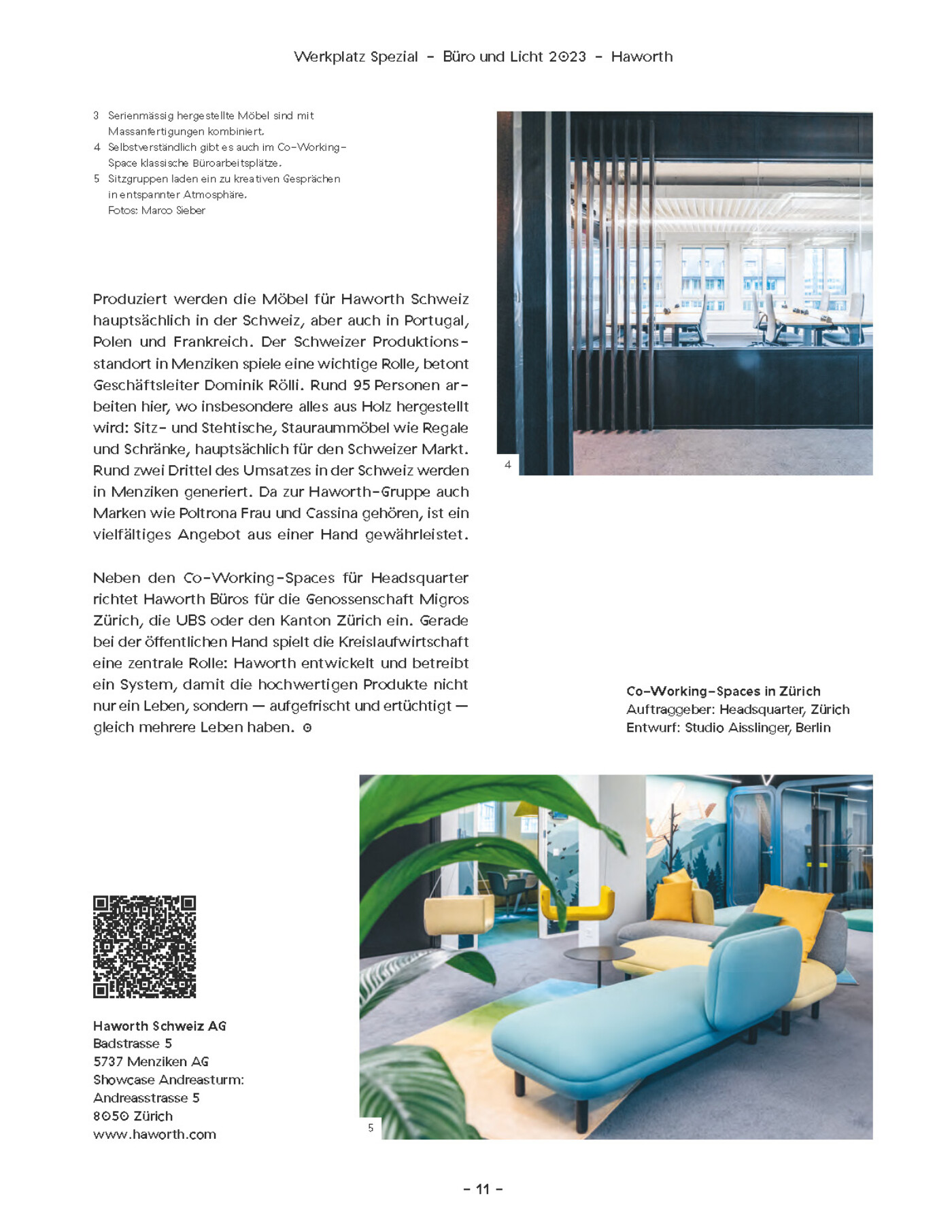 Additional articles by other authors addressed co-working projects, New Work, and also lighting. Werkplatz Schweiz is a publication of Hochparterre AG. The issue we worked on came out in fall 2023.