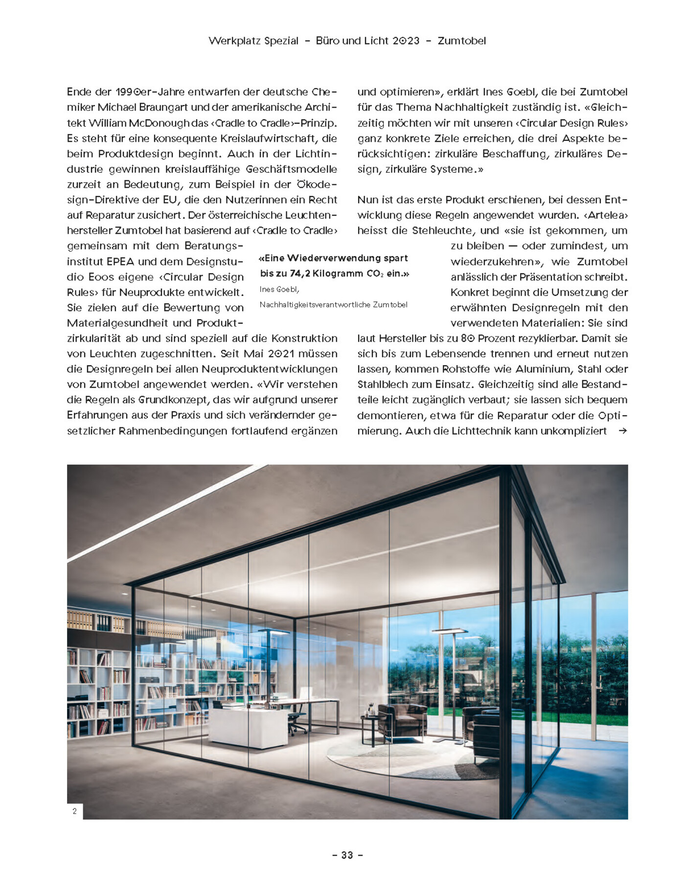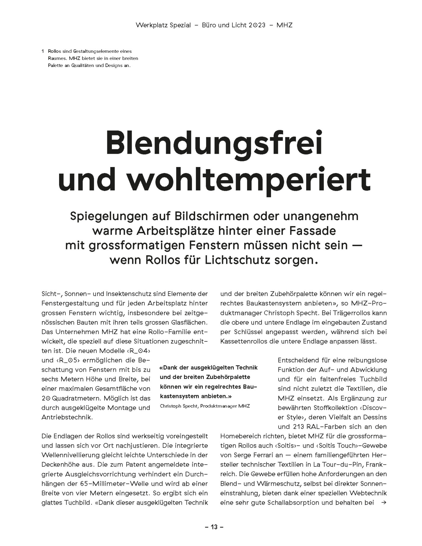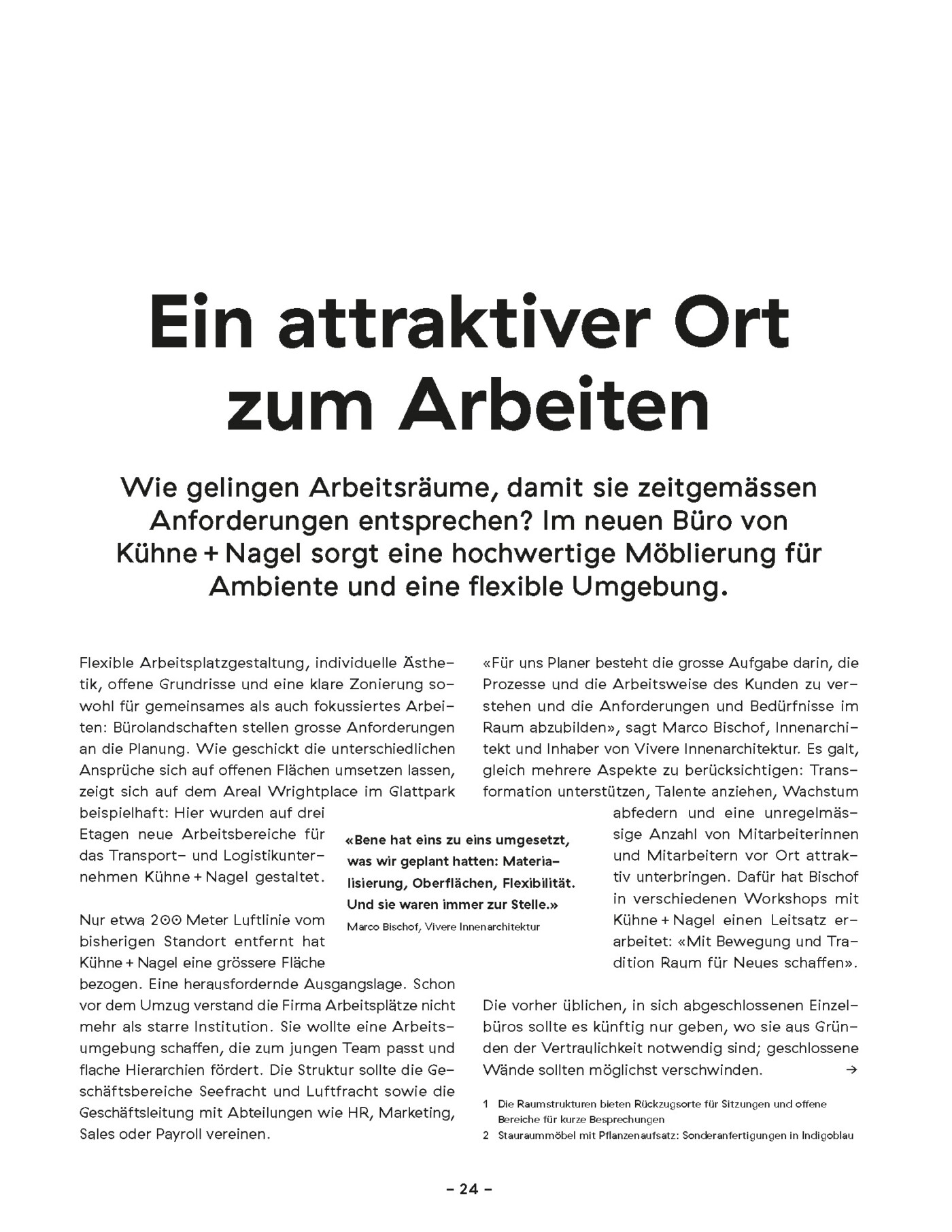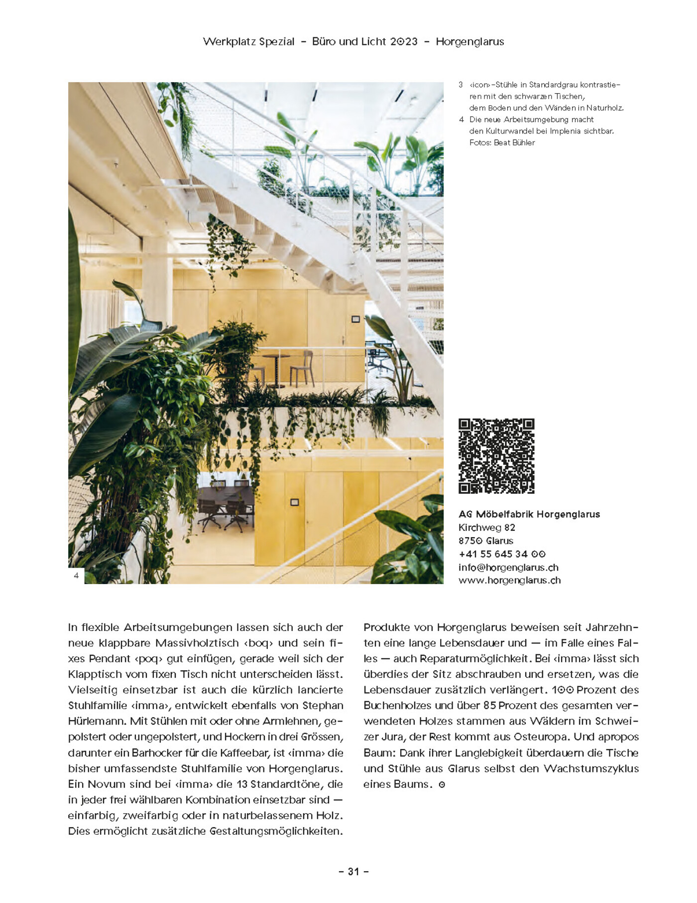 Additional articles by other authors addressed co-working projects, New Work, and also lighting. Werkplatz Schweiz is a publication of Hochparterre AG. The issue we worked on came out in fall 2023.